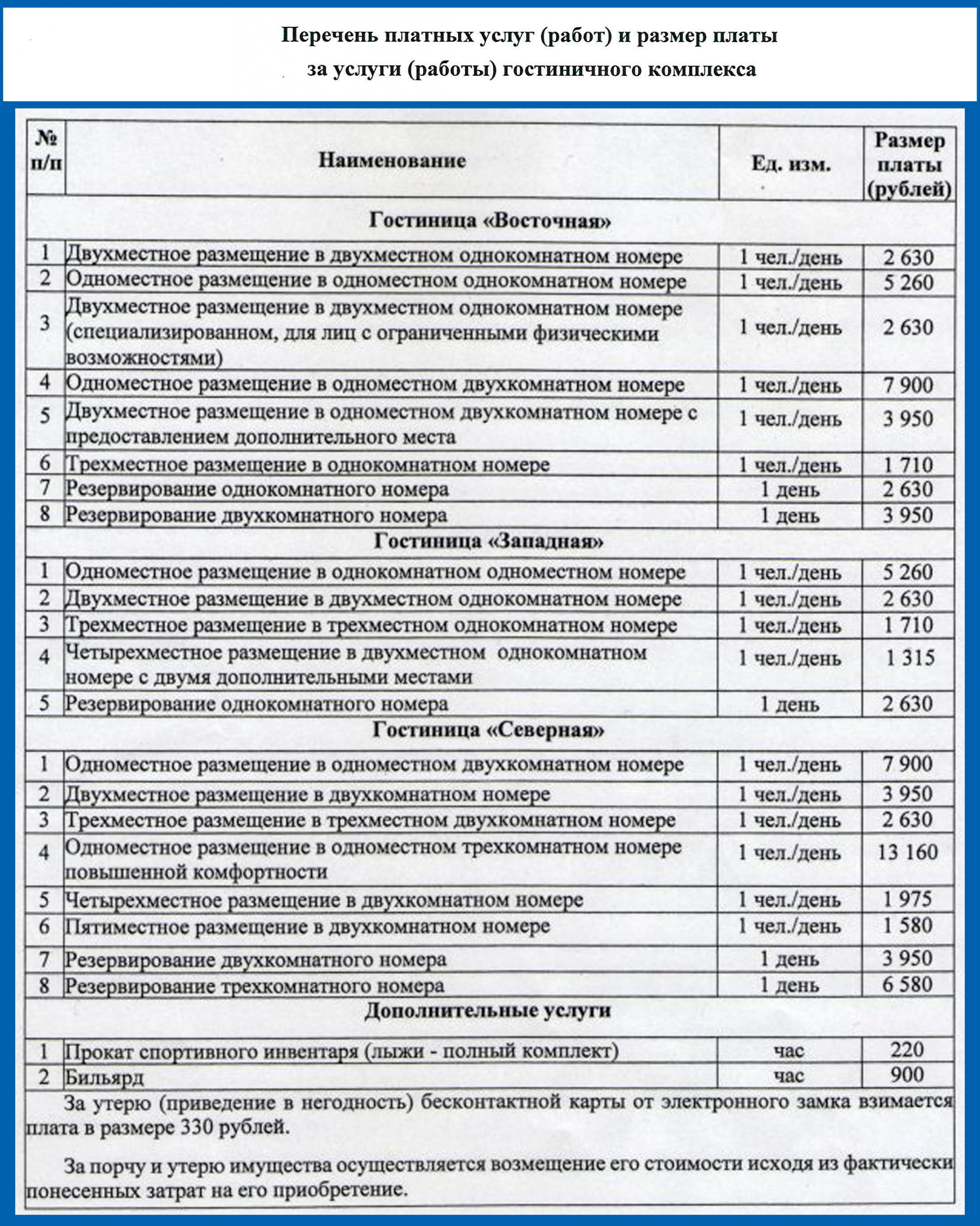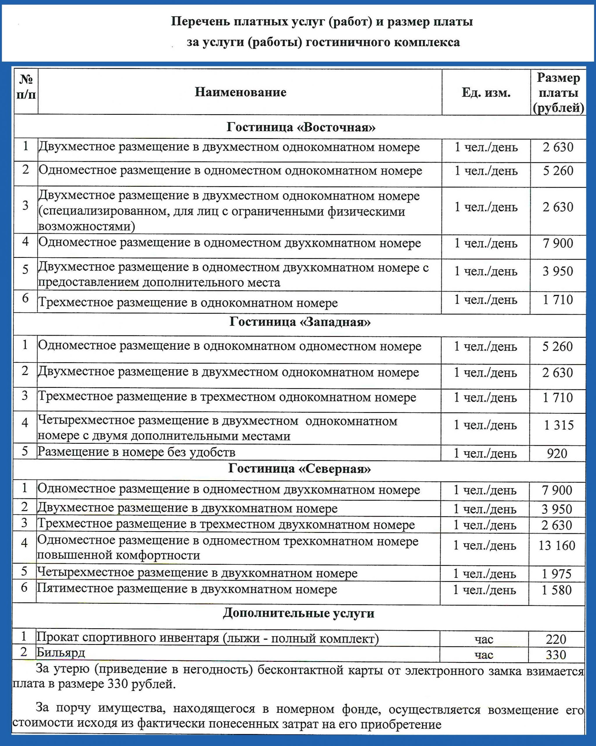 Услуги гостиничного комплекса